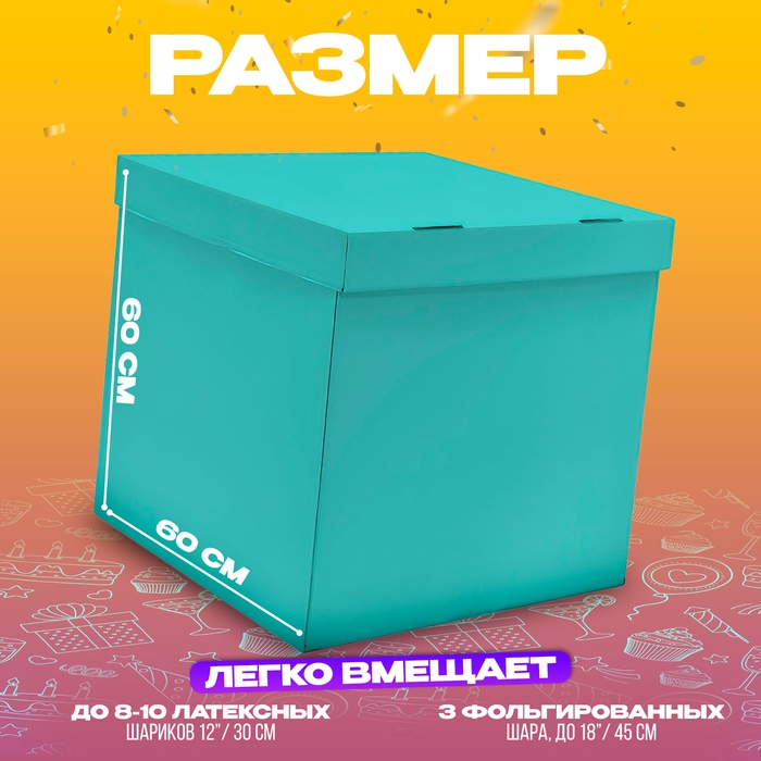 Коробка 60х60х60 см, бирюзовая, с крышкой, 1 шт.
