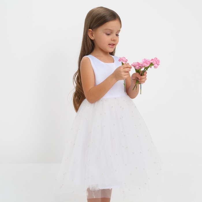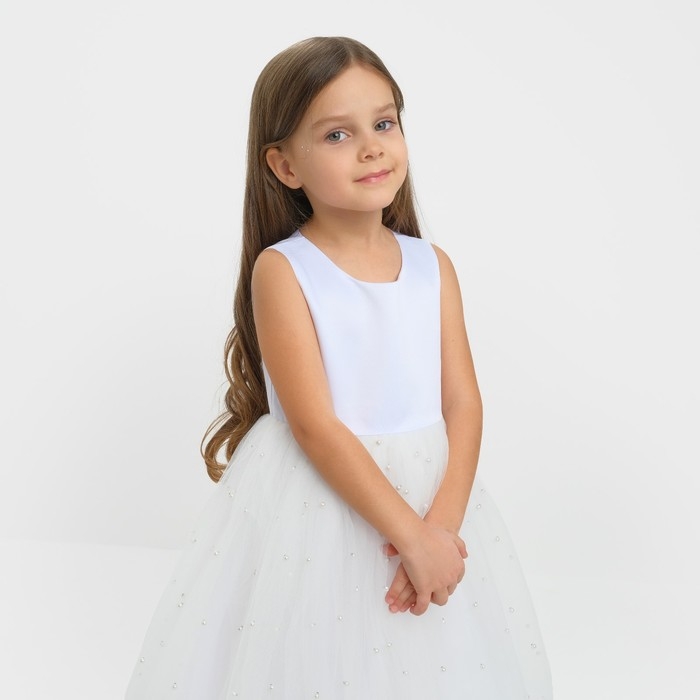 Платье детское с бусинками KAFTAN р. 36 (134-140 см), белый