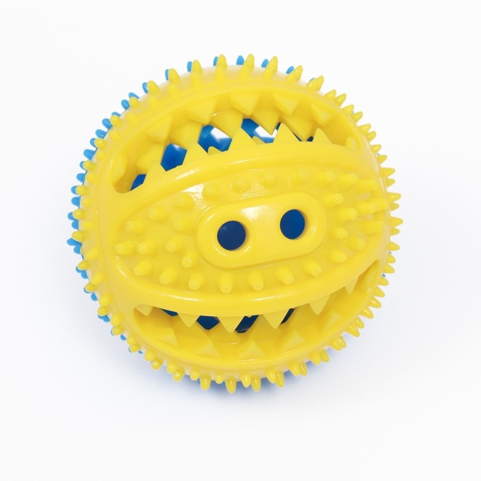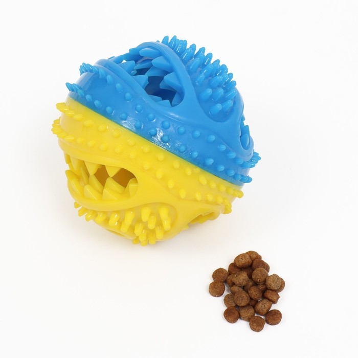 Шар под лакомства рельефный, TPR, 7 см, жёлто-голубой