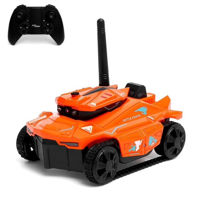 Вездеход радиоуправляемый «Шпион» с видеокамерой, управление с телефона, свет, цвет оранжевый