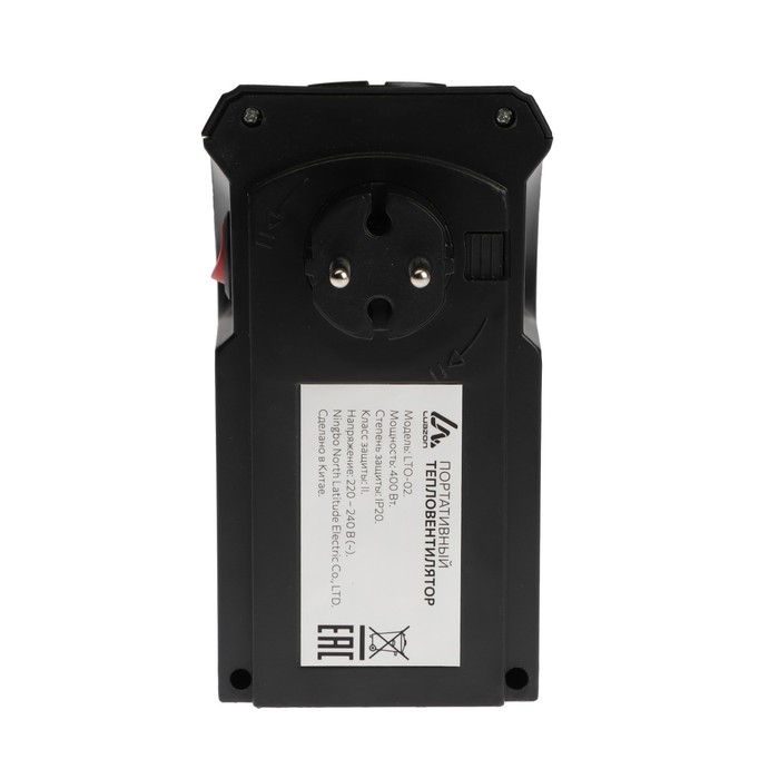 Портативный обогреватель Luazon LTO-02, 400Вт, 23 м², 2 режима, чёрный, от сети