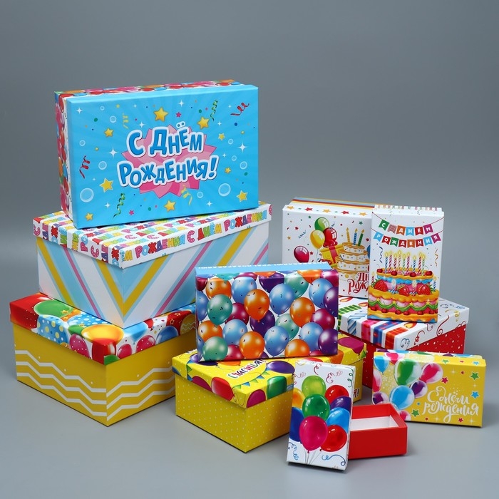 Набор коробок 10 в 1, упаковка подарочная, «С днём рождения», 12 х 7 х 4 - 32.5 х 20 х 12.5 см