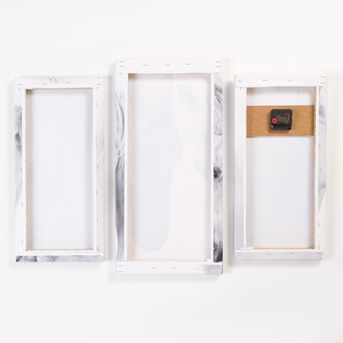 Часы выполнены на холсте, который не выцветает на солнце, не деформируется под влиянием повышенной влажности или перепадов температуры. Подрамник выполнен из МДФ - крепкого, экологически чистого материала. Качество сборки препятствует провисанию полотна со временем. Упакован в картонную коробку. У часов простая система креплений. Рекомендуемое расстояние между модулями 1-2 см. Без стекла. Механизм бесшумный, батарейка формата АА в комплект не входит. Тип индикации - арабские цифры, что делает время на часах четко видимым и легко читаемым.
