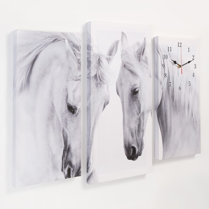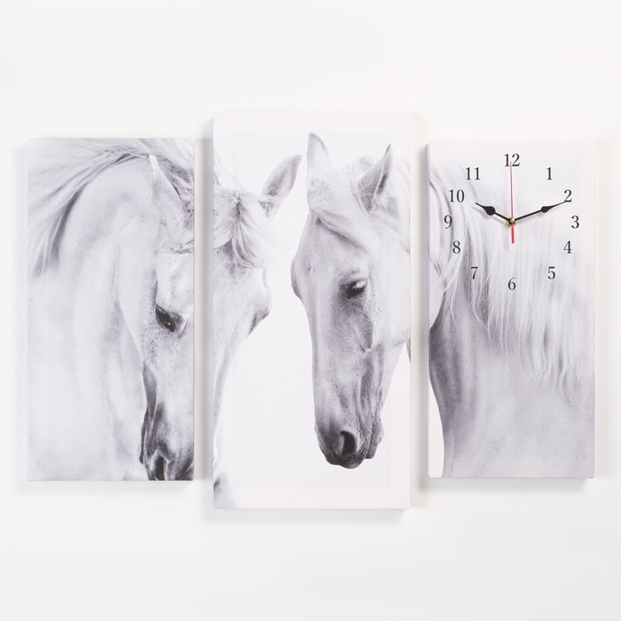 Часы-картина настенные, модульные "Лошади", бесшумные, 60 х 80 см, триптих