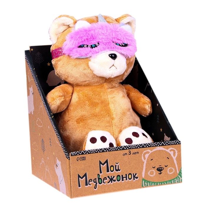 Мягкая игрушка «Мишка», 23 × 15 см, в маске для сна