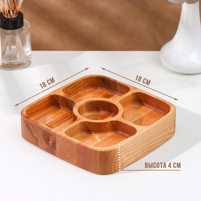 Менажница деревянная глубокая Adelica, 5 секций, береза, 18×18×4 см