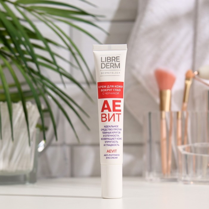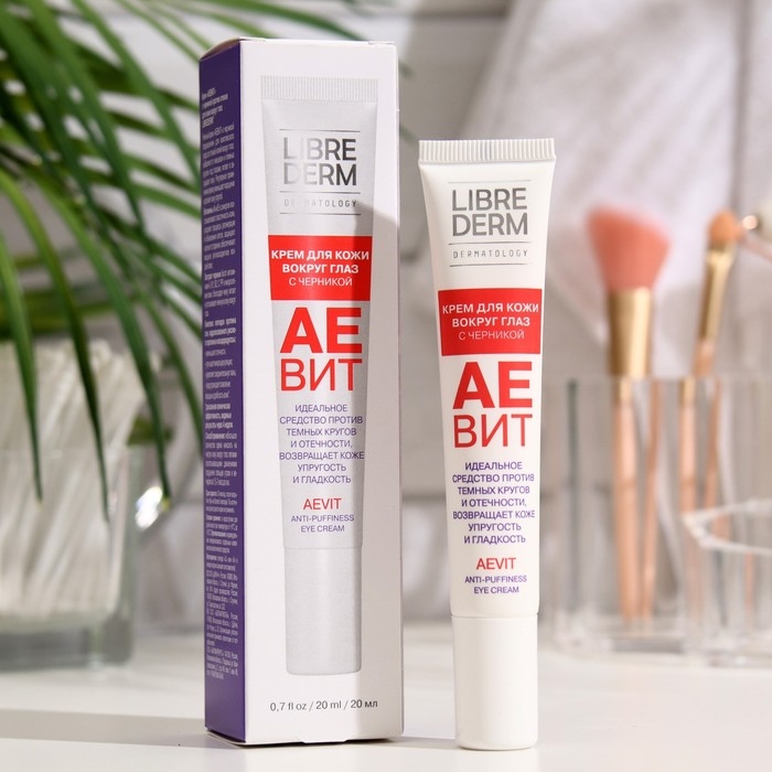Крем с черникой Librederm Аевит против отеков для кожи вокруг глаз с черникой предназначен для комплексного ухода за тонкой кожей вокруг глаз: избавляет от мешков и темных кругов под глазами, питает и защищает кожу.