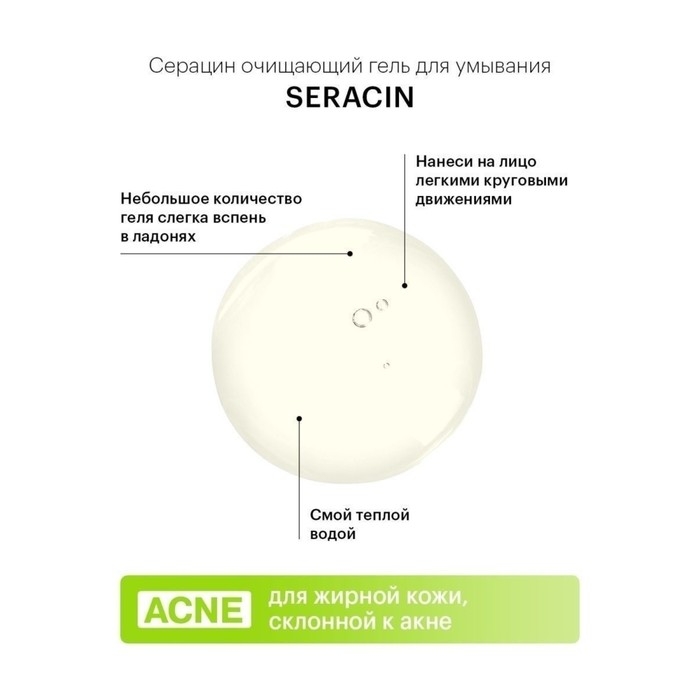 Способ применения: небольшое количество геля слегка вспенить в ладонях, затем нанести на влажную кожу лица легкими круговыми движениями, уделяя внимание Т-зоне, затем тщательно смыть водой. Повторить при необходимости. Использовать дважды в день, утром и вечером.