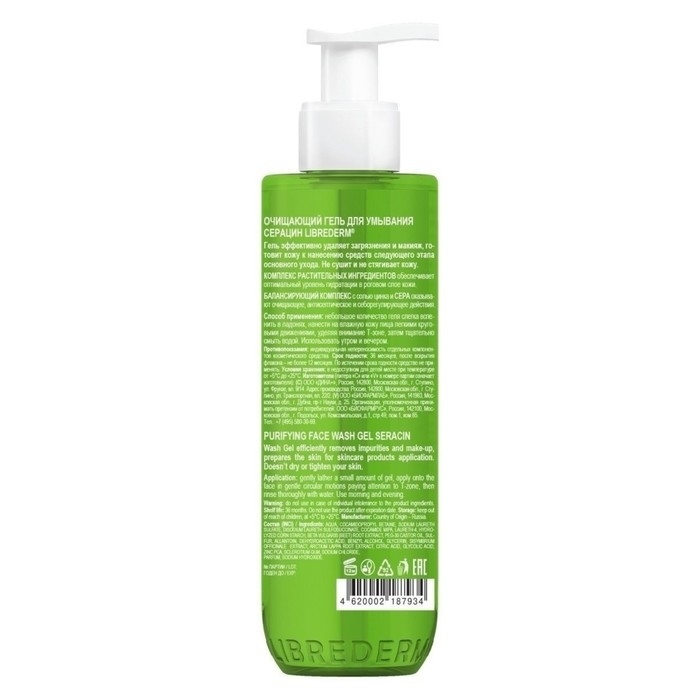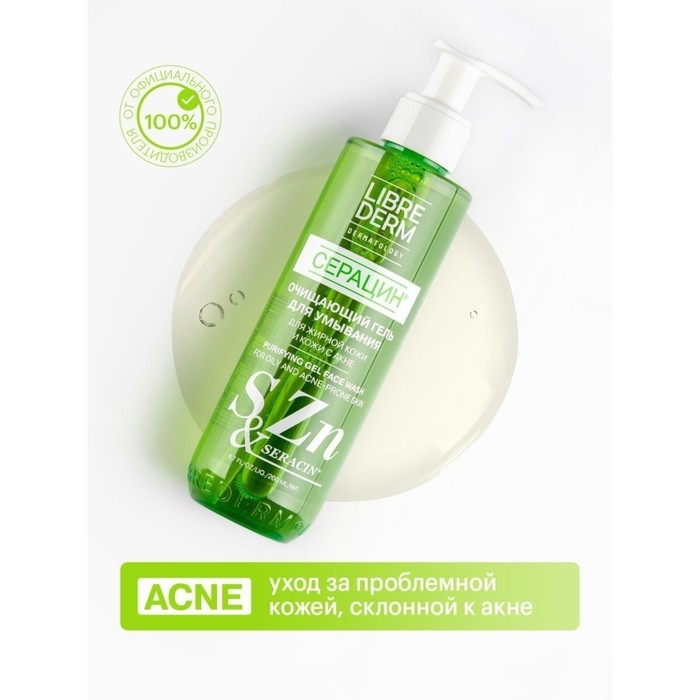 Очищающий гель для умывания Librederm Серацин разработан для жирной, проблемной кожи лица и эффективно работает против акне. Мягко удаляет загрязнения и макияж, подготавливает кожу к нанесению уходовых средств. Не сушит и не стягивает.