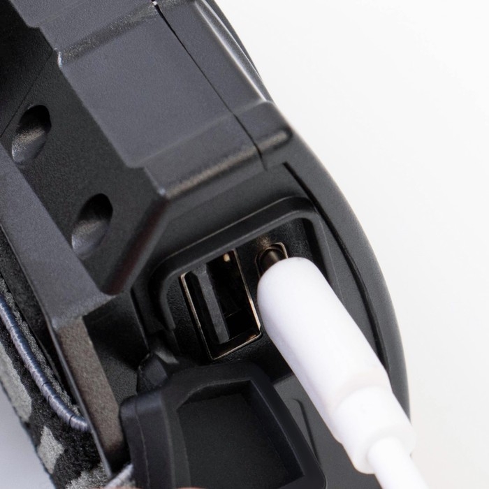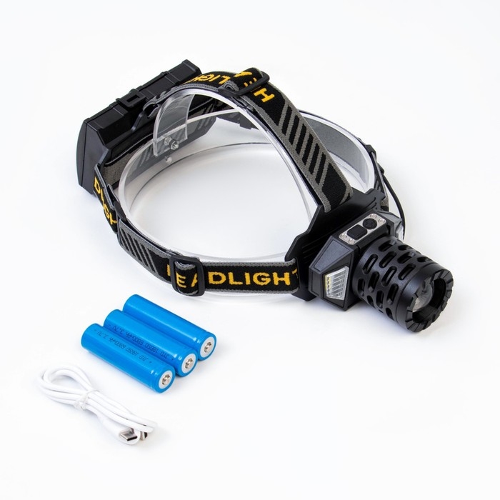 Фонарь налобный аккумуляторный, 50 Вт, 4500 мАч, 2000 лм, XHP, LED, USB, 4 режима