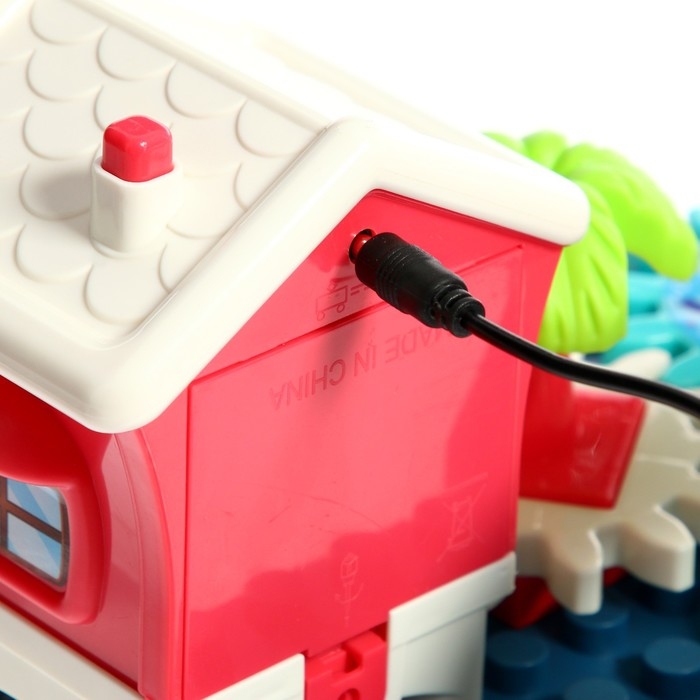 - Конструктор можно крутить вручную или использовать моторчик. Он находится в «Весёлом домике».