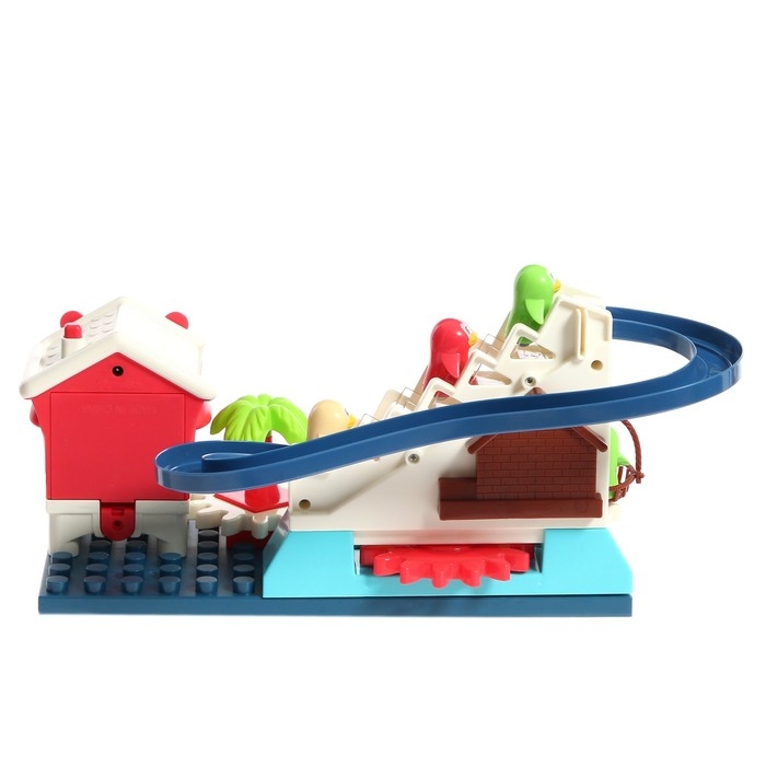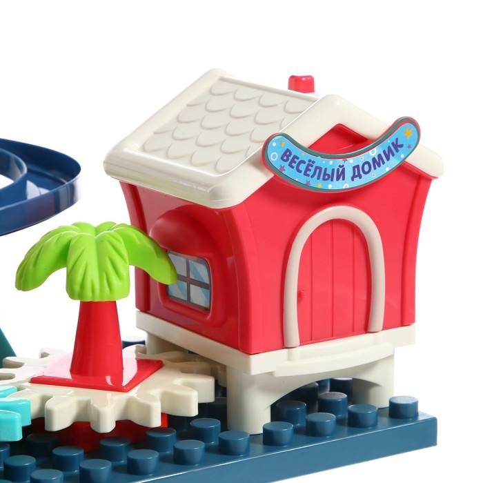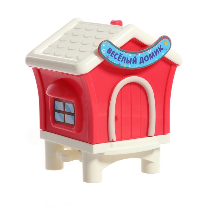 - Конструктор можно крутить вручную или использовать моторчик. Он находится в «Весёлом домике».