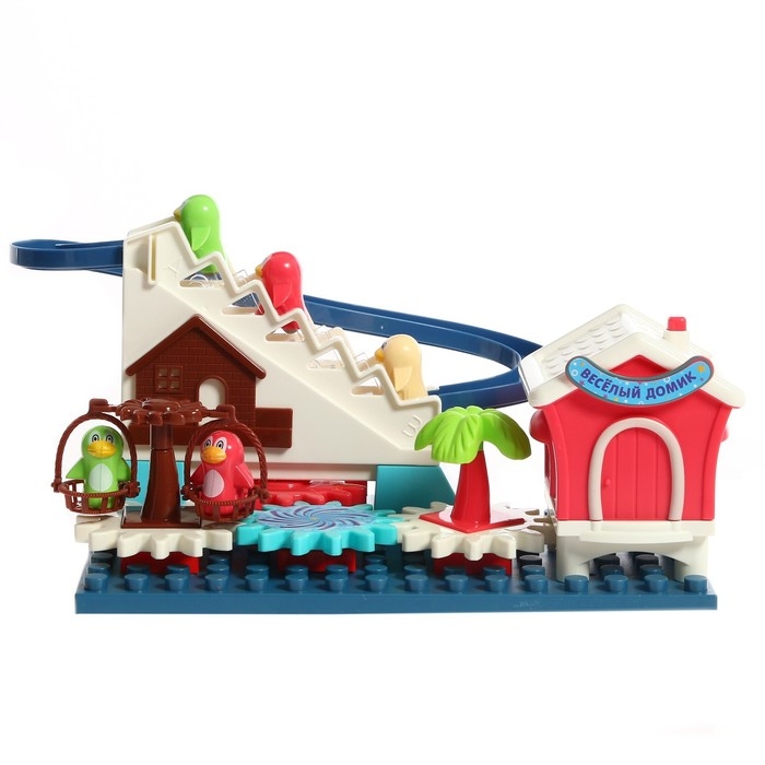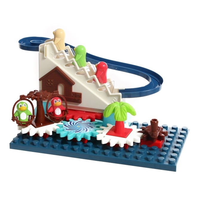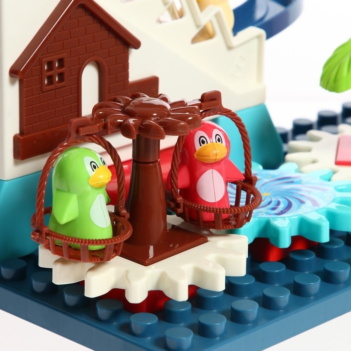 Развивающий конструктор с шестерёнками — увлекательный аттракцион для милых пингвинят. Небольшой парк развлечений двигается за счёт вращения шестерёнок.