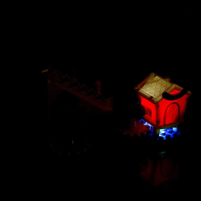 - У домика есть световые и звуковые эффекты. Для работы требуется 3 батарейки типоразмера AA (нет в комплекте) или источник питания 5 В (в комплект входит USB-кабель).