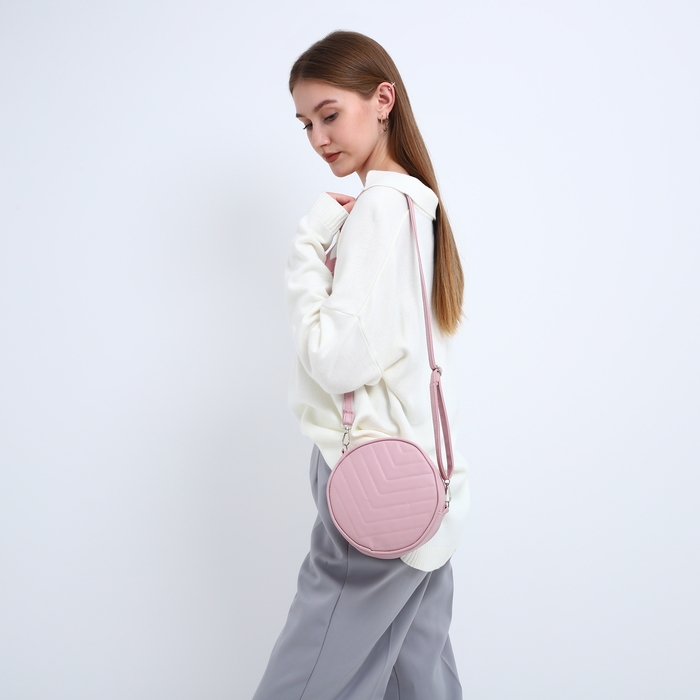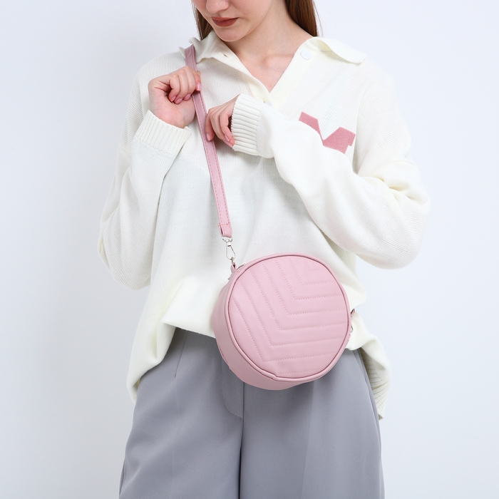 Сумка женская круглая из искусственной кожи, 18х18 см, цвет розовый