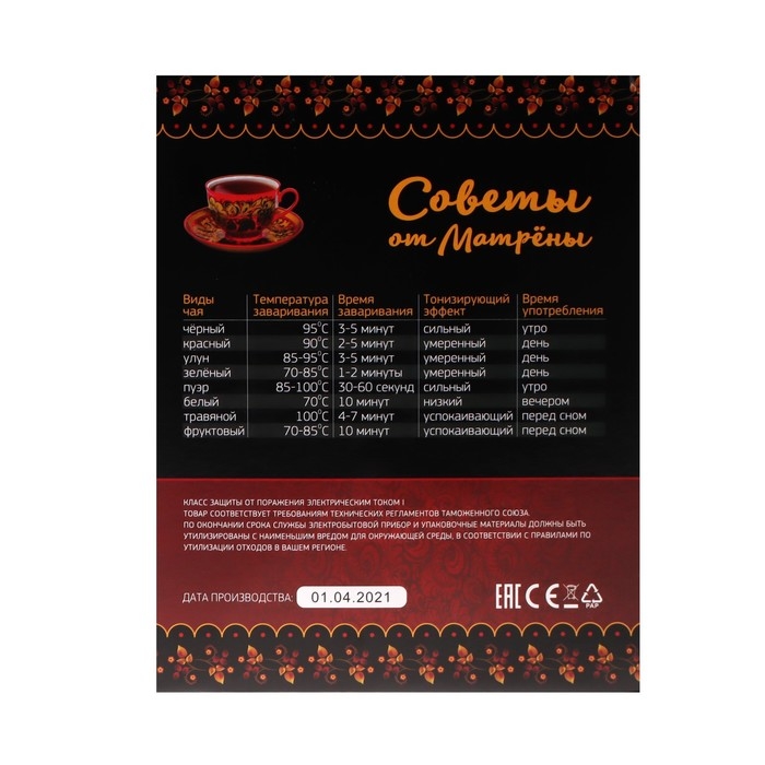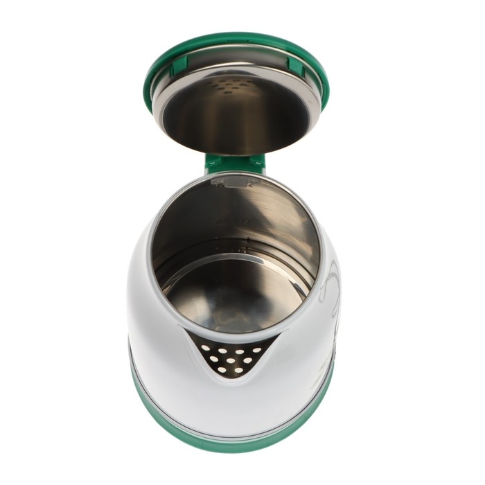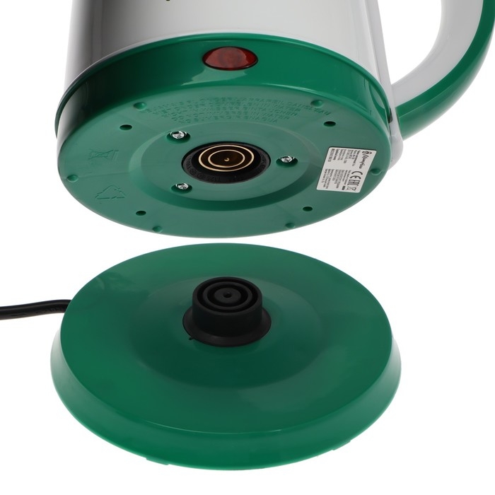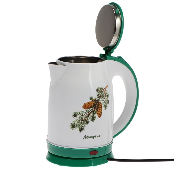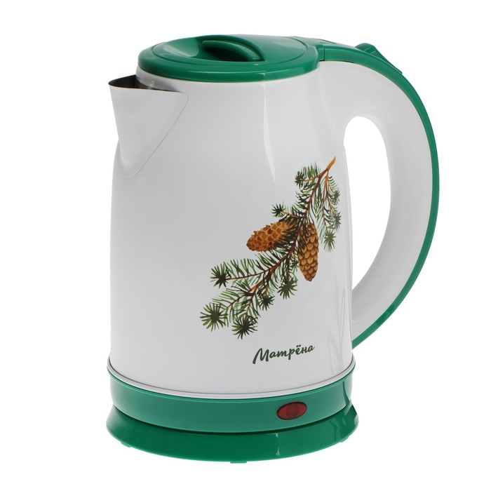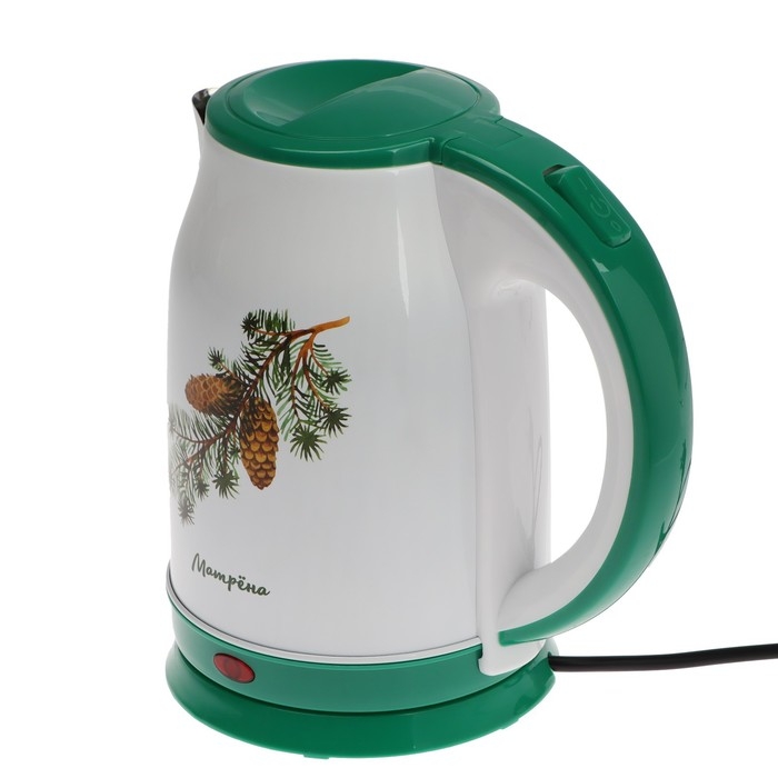 Чайник электрический МАТРЁНА MA-120, металл, 1.8 л, 1500 Вт, бело-зелёный с рисунком "Шишки"