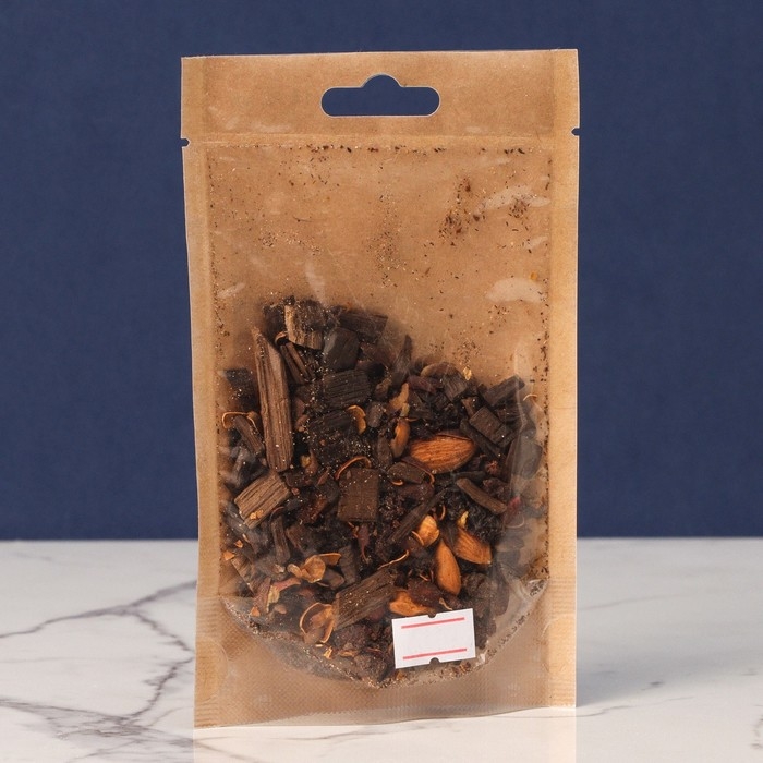 Состав: дуб (щепа), изюм тёмный, миндаль (ядро), абрикос (ядро), кедровый орех (скорлупа), барбарис (плоды), мускатный орех, гвоздика (бутоны).
