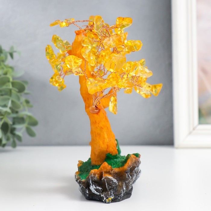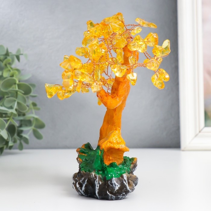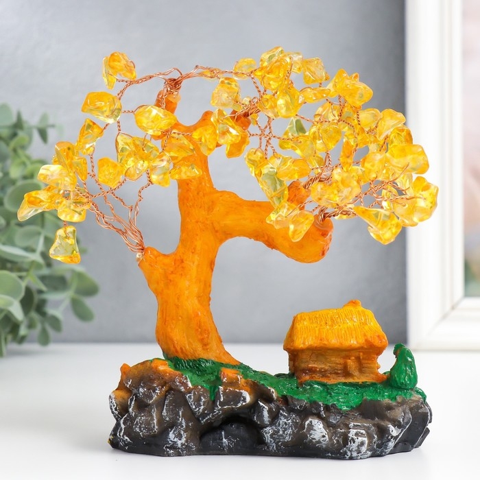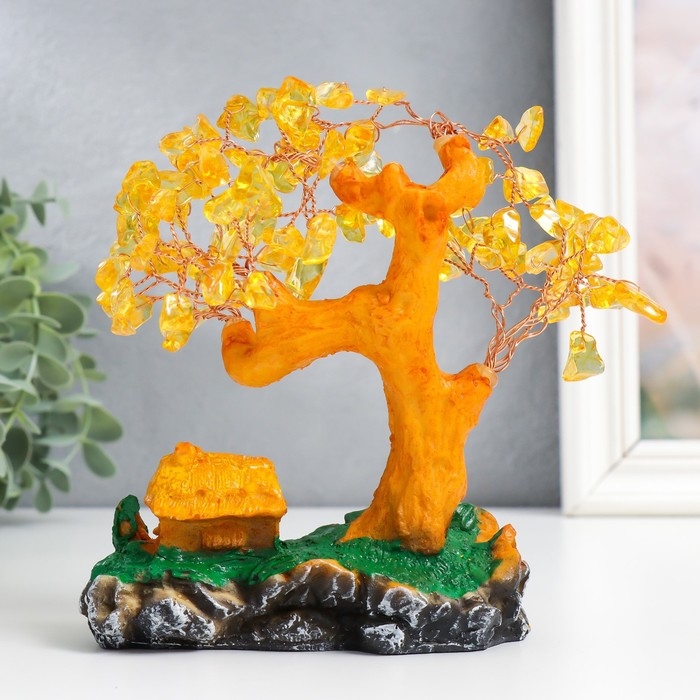 Сувенир бонсай "Денежное дерево с янтарём - домик" 90 камней 18х17х5,5 см