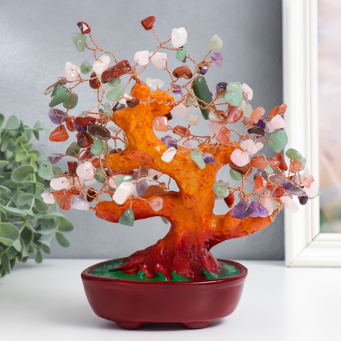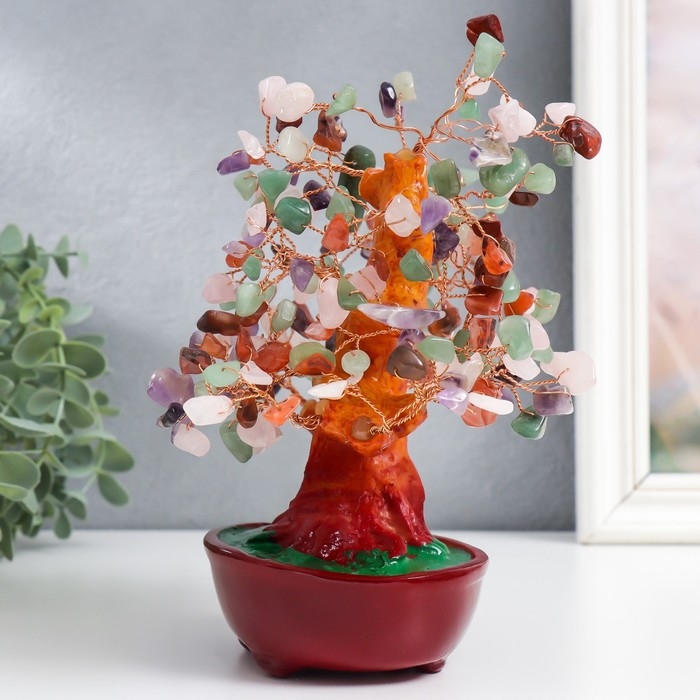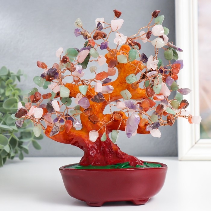 Сувенир бонсай "Разноцветное денежное дерево в овальном горшке" 196 камней 23х9,5х19 см