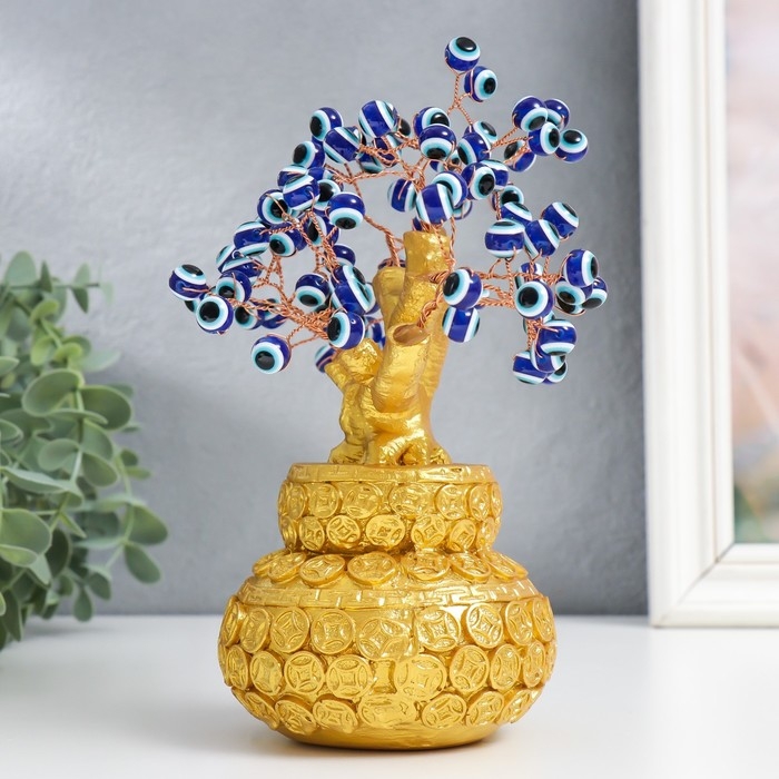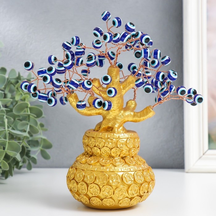 Сувенир бонсай "Денежное дерево в золотом горшке" 96 глазков 20х9х17 см