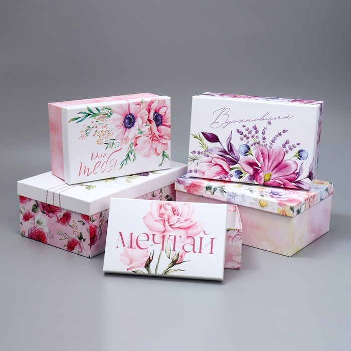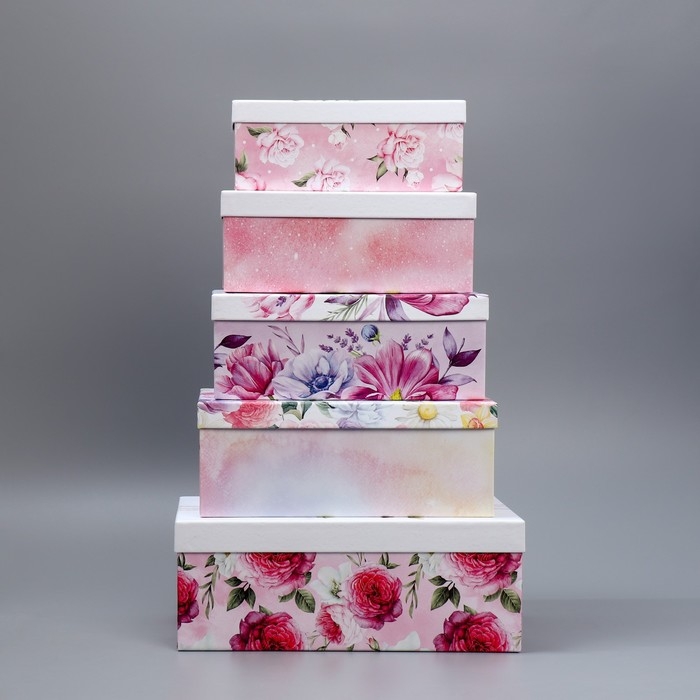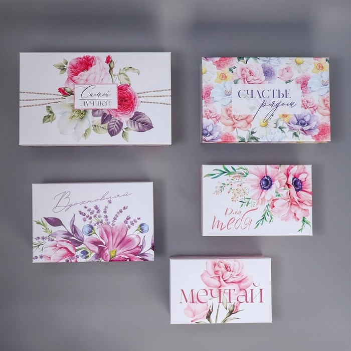 Набор коробок 5 в 1, упаковка подарочная, «Цветы», 22 х 14 х 8.5‒ 32.5 х 20 х 12.5 см