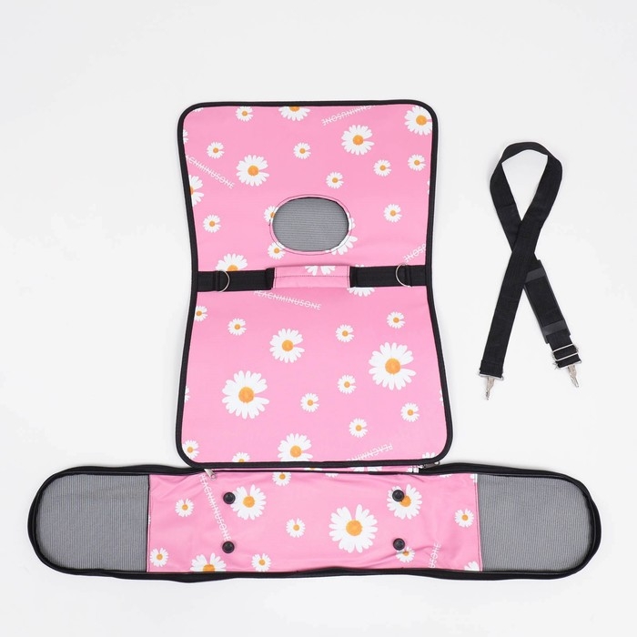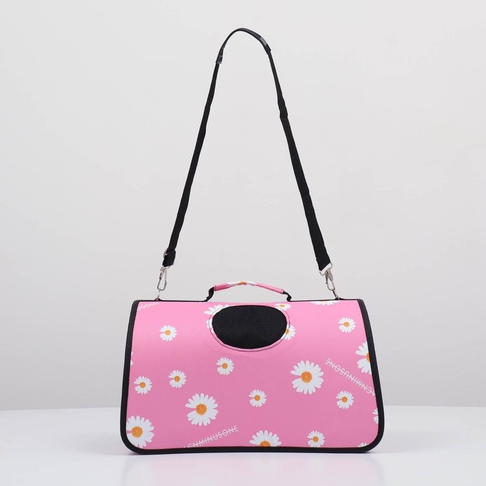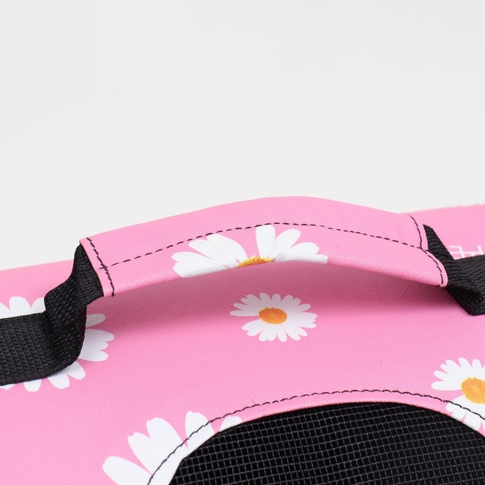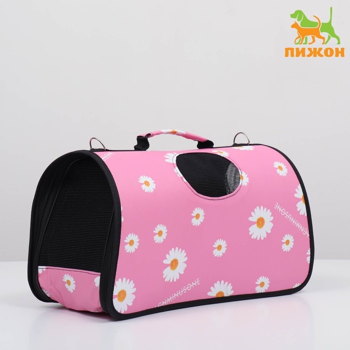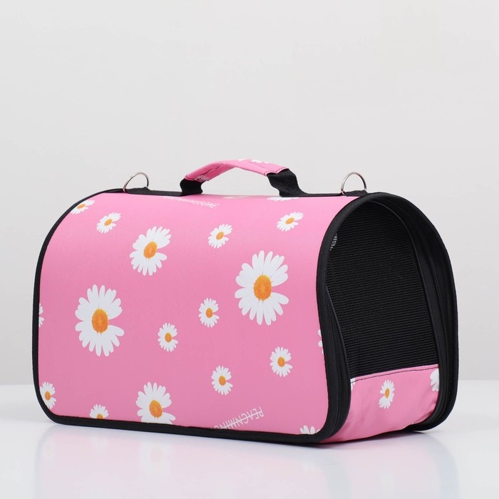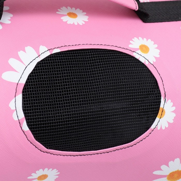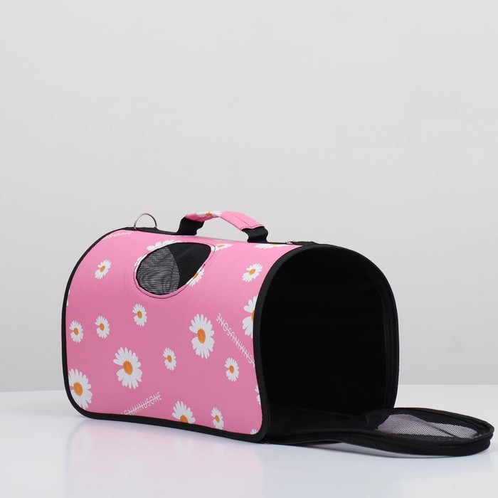 Сумка - переноска для животных "Цветы", розовая, размер М, 40 х 21 х 27 см