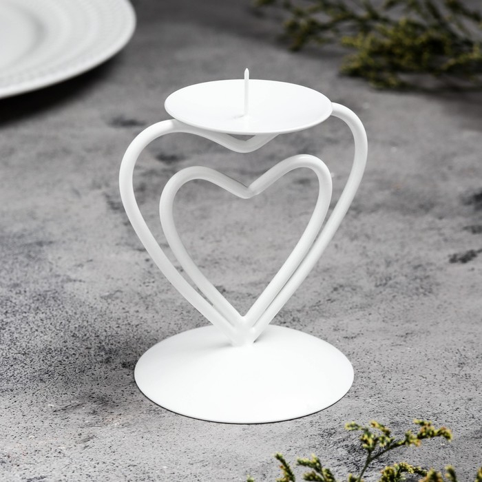 Подсвечник "Гламур" металл на 1 свечу, 9х10,2 см, белый