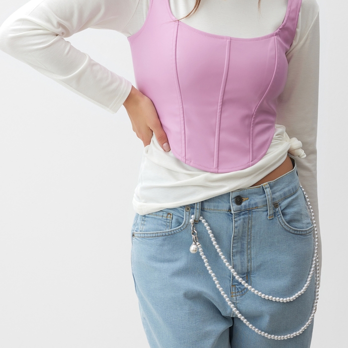 Портупея «Сумочка» жемчужинки, цвет белый в серебре, 123 см