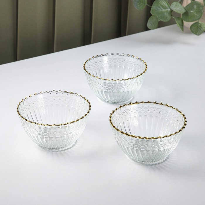 Набор салатников стеклянных на подставке «Ронда», 350 мл, 37,5×32,5×7 см, 3 шт