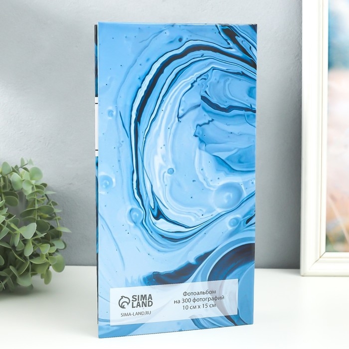 Фотоальбом на 300 фото 10х15 см "Разводы голубой краски" 33,5х17,5х5 см
