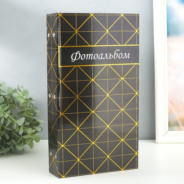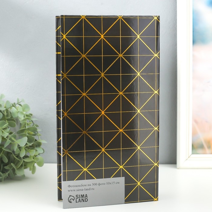 Фотоальбом на 300 фото 10х15 см "Геометрия на чёрном" золото 33,5х17,5х5 см