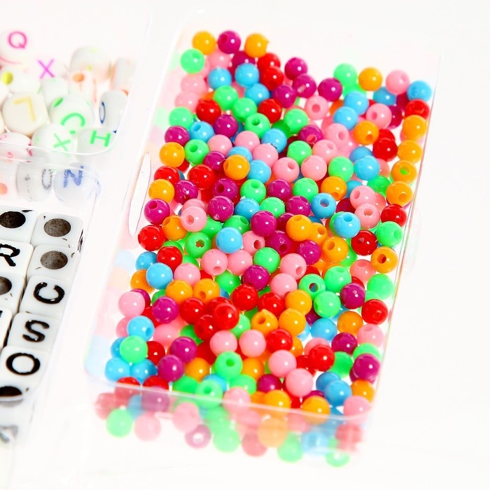 - В комплекте есть бусины с буквами, из которых можно составить надпись на браслете.