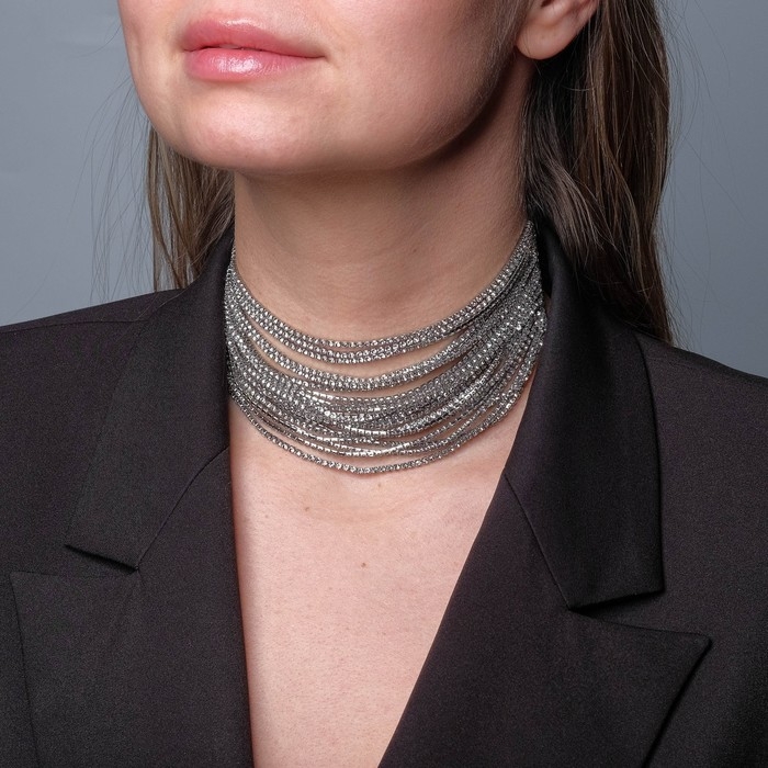 Чокер «Лёд» изысканный, цвет белый в серебре,30 см