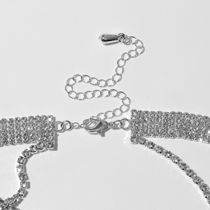 Набор 2 предмета: серьги, чокер «Лёд» 4 ряда, цвет белый в серебре, 44,5 см