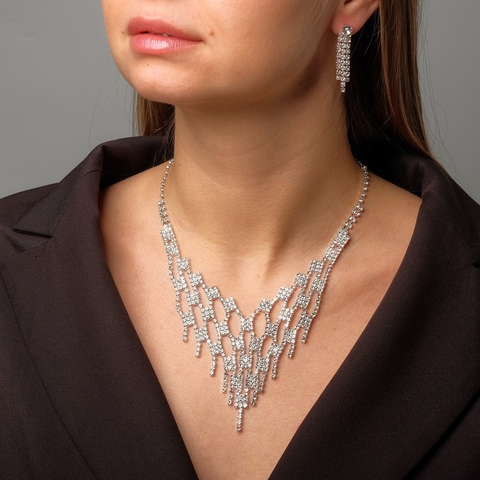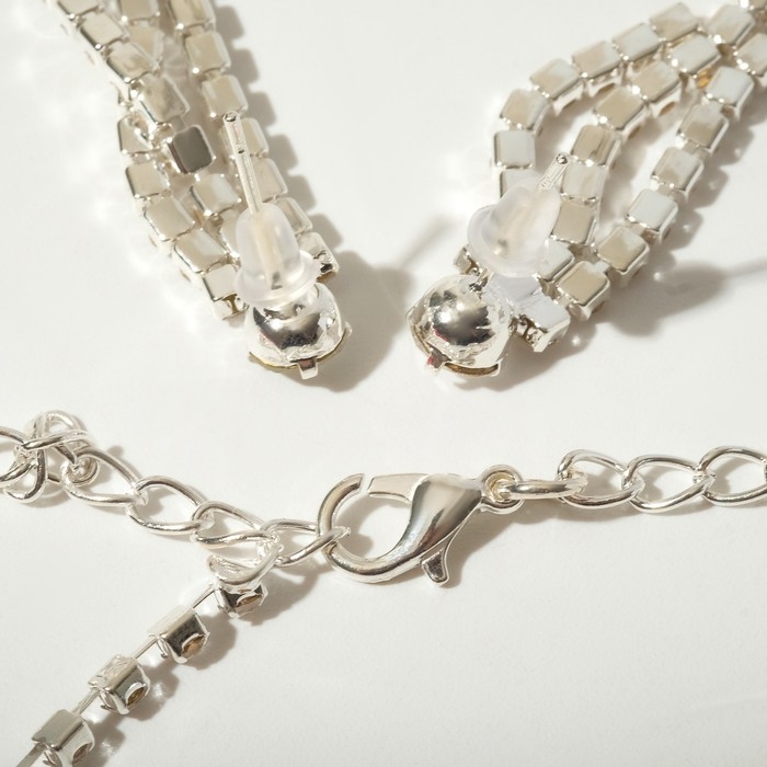 Набор 2 предмета: серьги, колье «Искры» кисточки, цвет белый в серебре, 30 см