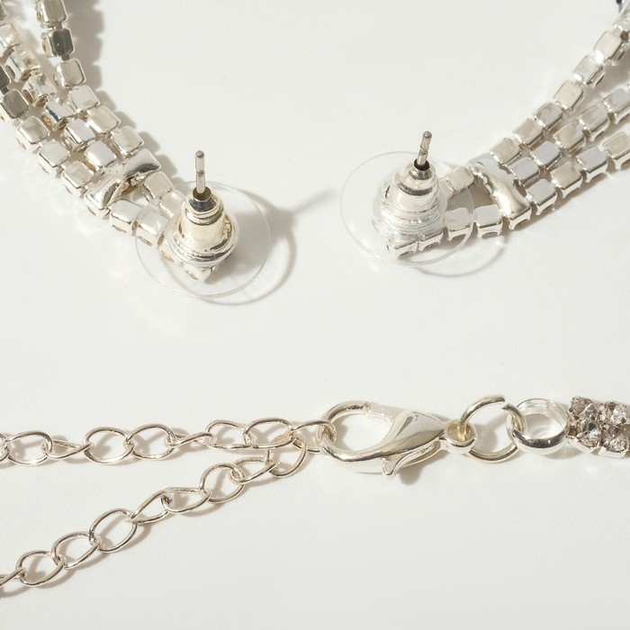 Набор 2 предмета: серьги, чокер «Лёд» 4 ряда, цвет белый в серебре, 44,5 см