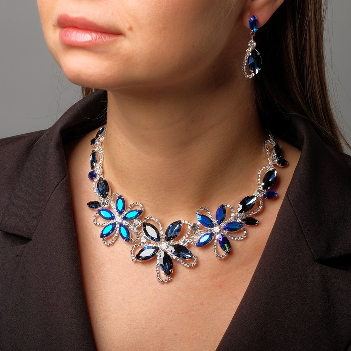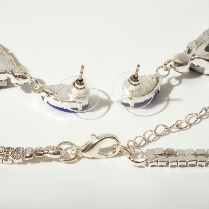Набор 2 предмета: серьги, колье «Цветение», цвет бело-синий в серебре, 40 см