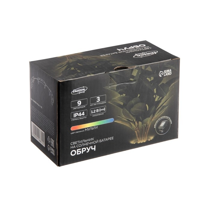 Садовый светильник на солнечной батарее «Обруч», 9 LED, свечение мульти