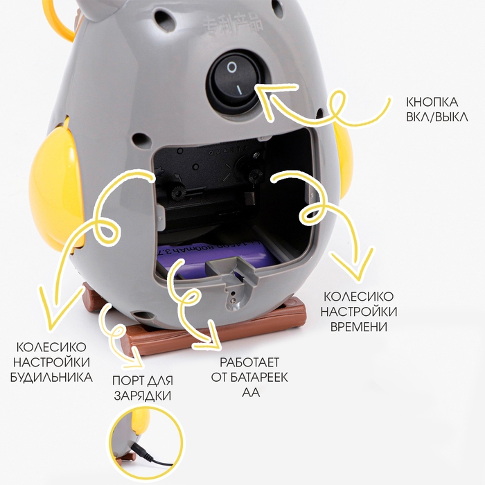 Часы будильник настольные с подсветкой представлены в ярком дизайне в форме совы, они отлично впишутся в ваш интерьер. Интерьерные часы со светильником станут прекрасным декором для дома и дачи, их можно поставить как на прикроватную тумбочку в спальне, детской комнате, гостиной так и на стол или на комод в зале, холле или на кухне. Особенностью данного настольного будильника является наличие подсветки. На циферблате изображены яркие разноцветные арабские цифры и три стрелки, легко читаются, по ним ребенку будет удобно учиться определять время. Часы можно использовать в качестве ночника или офисной лампы на столе школьника. На задней панели помимо отсека для батарейки типа АА (в комплект не входит) находятся переключатель включения/выключения будильника, колесики чтобы настроить текущее время и время пробуждения, а также кнопка для включения/выключения подсветки. Другая особенность этих часов в том, что они могут работать также от сети через входящий в комплект кабель USB, также в комплекте аккумулятор.