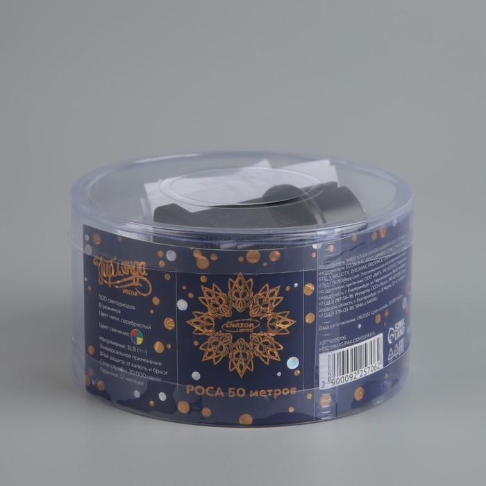Гирлянда «Нить» 50 м роса, IP44, серебристая нить, 500 LED, свечение мульти, 8 режимов, 31 В