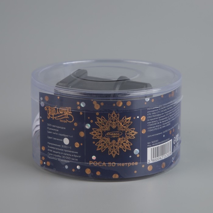 Гирлянда «Нить» 50 м роса, IP44, серебристая нить, 500 LED, свечение белое, 8 режимов, 31 В