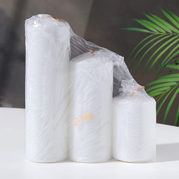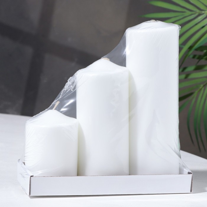 Набор свечей - цилиндров 3в1 (6х14 см, 6х19 см, 6х8,5 см), белый