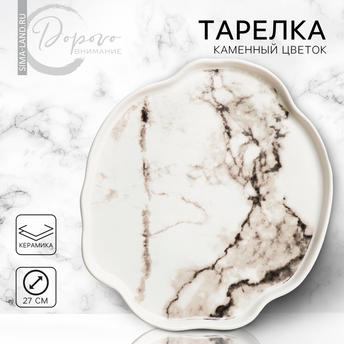 Тарелка керамическая «Белый мрамор», 27 см, цвет белый