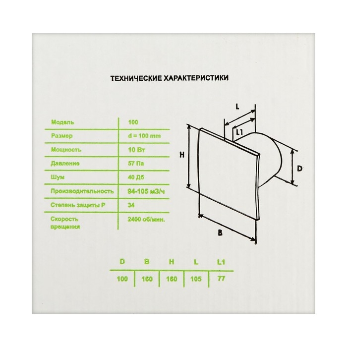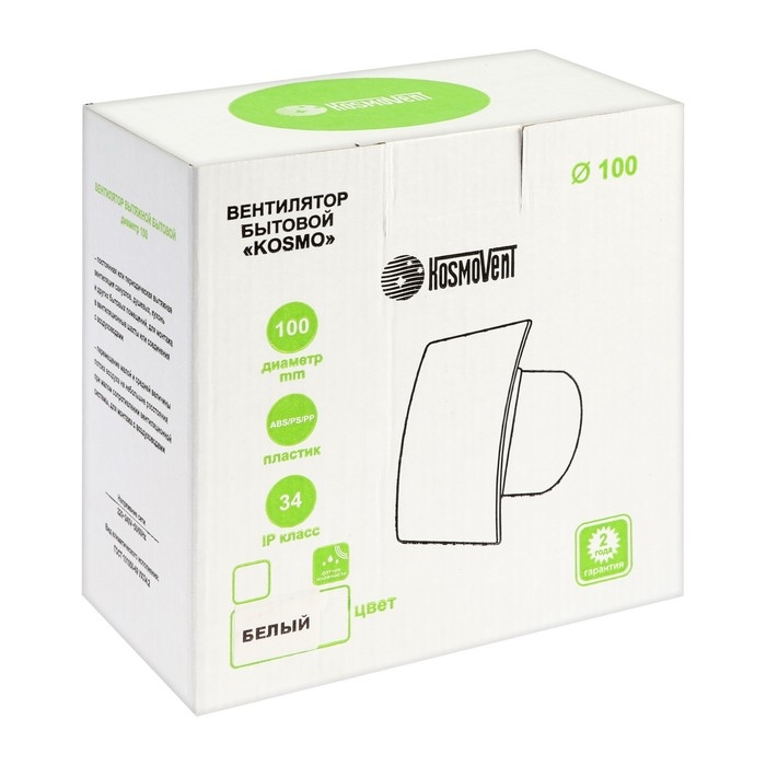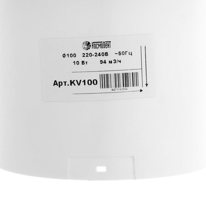 Вентилятор вытяжной "КосмоВент" KV100, d=100 мм, 33-41 дБ, без выключателя