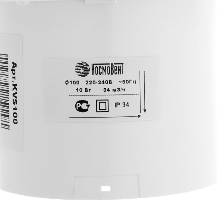 Вентилятор вытяжной "КосмоВент" KVS100, d=100 мм, 33-41 дБ, без выключателя, матовое серебро