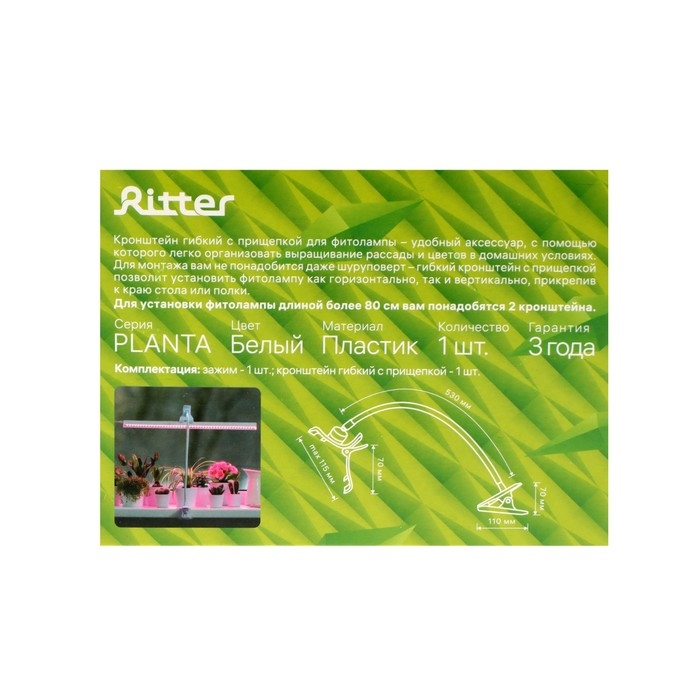Штатив гибкий с прищепкой и держателем для светильника, Ritter, белый