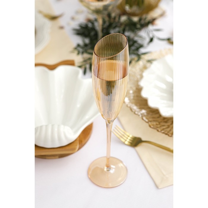 Набор бокалов для шампанского стеклянный Magistro «Иллюзия», 180 мл, 5,5×27,5 см, 6 шт, цвет золотой