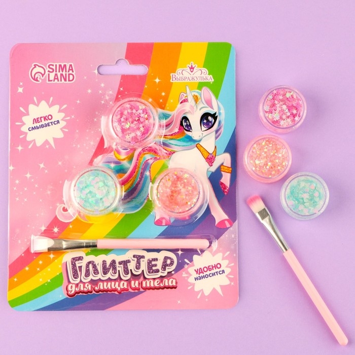 Глиттер для лица и тела «Единорожка», блеск по 3 гр, кисточка