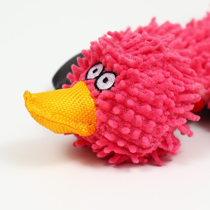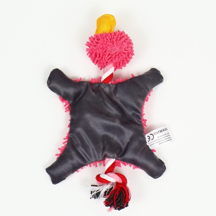 Оснащена одной пищалкой, которая располагается в голове , шея и хвост выполнены в виде крепких канатов, которые отлично подойдут для грызения, внутри тела игрушки есть шуршащий материал.