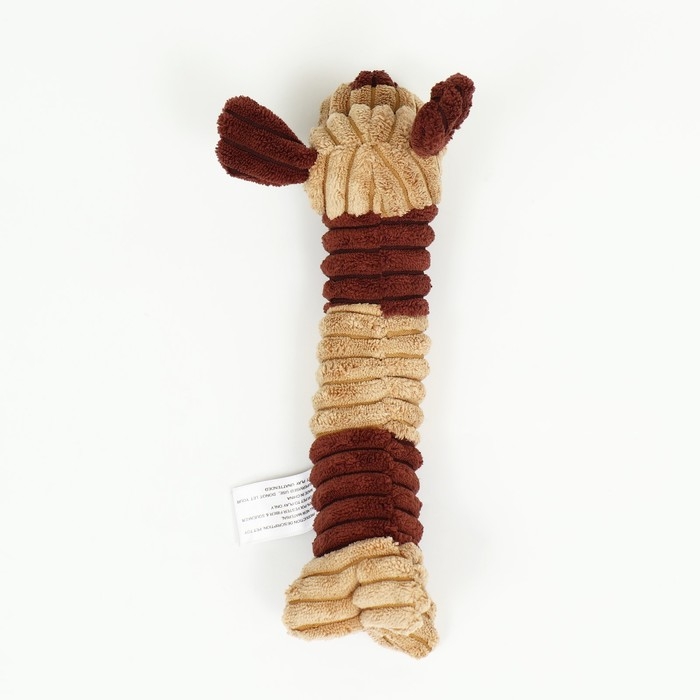 Оснащена одной пищалкой, которая располагается в голове , шея и хвост выполнены в виде крепких канатов, которые отлично подойдут для грызения, внутри тела игрушки есть шуршащий материал.